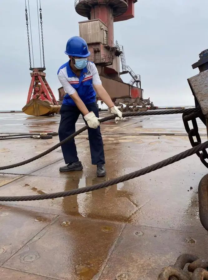 機修工將自己化身為“大力士”,重達上百斤的門機防風錨鏈,對于經常進行防臺防汛應急演練的港口人來說,早已不在話下,門機拉索在他們手中順勢下拉便可固定,這是他們書寫港口平安篇章的獨特方式。