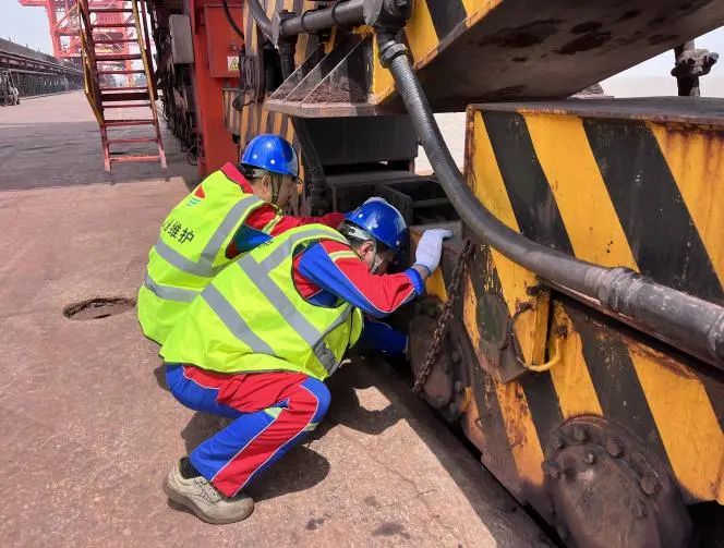 散貨碼頭分公司充分利用生產作業空檔期,制定機械設備專項整治方案。明確班次人員,分組包干確定工作職責,重點查找設備常發故障,潛在隱患問題。針對門機、堆料機、皮帶機、抓斗等大型重點設備開展“大體檢”,全面檢查潤滑油、螺栓、鋼絲繩、電源等關鍵部件的損耗狀況,消除各類潛在隱患。