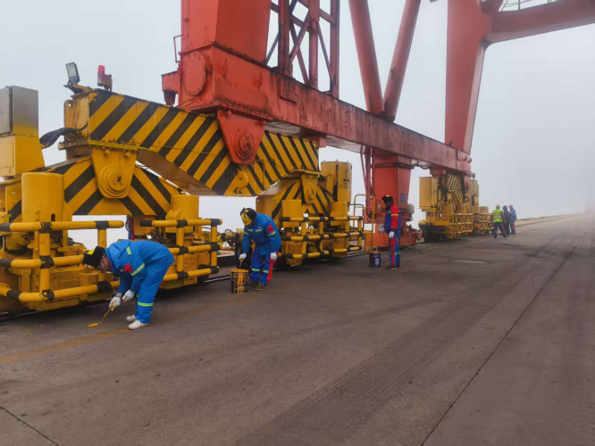 全面開展防腐涂漆工作,大力組織班組人員深入排查起重設備吊具、吊鉤、鋼絲繩銹蝕情況,分批次進行深度清潔,細致打磨,去除油污雜質,潤滑刷漆上色,清理油漆褪色、掉皮、鼓包,開展二次補漆工作,為設備穿上“新衣”,進一步提升設備使用壽命,讓港容港貌煥發“新顏值”。