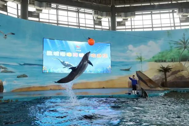 稍作休整后,一行人來到海洋世界,精彩絕倫的海豚表演將活動推向高潮。聰明可愛的海豚在訓(xùn)練師的引導(dǎo)下,完成跳躍、頂球等一系列高難度動作,濺起的水花與孩子們的歡呼聲交織在一起,現(xiàn)場變成了歡樂的海洋。隨后,眾人走進(jìn)港泊科幻城,沉浸式體驗(yàn)前沿科技帶來的震撼與樂趣,在虛擬與現(xiàn)實(shí)的交織中,孩子們仿佛置身于未來世界,探索欲與好奇心得到充分滿足。