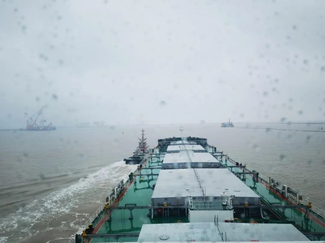 其中,濱海港區(qū)憑借挖入式港池的屏障作用,在抵御風(fēng)雨中顯現(xiàn)優(yōu)勢(shì)。值班引航員密切關(guān)注氣象預(yù)警,結(jié)合港區(qū)水文條件,科學(xué)嚴(yán)謹(jǐn)評(píng)估優(yōu)化船舶進(jìn)出港計(jì)劃。經(jīng)反復(fù)研判,最終確定在高潮時(shí)段引領(lǐng)船舶進(jìn)港。當(dāng)日,盡管暴雨如注、能見度極低,引航員們無畏風(fēng)雨、迎難而上。他們穿戴專業(yè)防護(hù)裝備,身著防雨斗篷與防滑雨靴,準(zhǔn)時(shí)登輪作業(yè)。在一個(gè)半小時(shí)的緊張操作中,憑借精湛技藝和豐富經(jīng)驗(yàn),引航員精準(zhǔn)操控,成功將“華元503”輪安全平穩(wěn)靠泊碼頭。