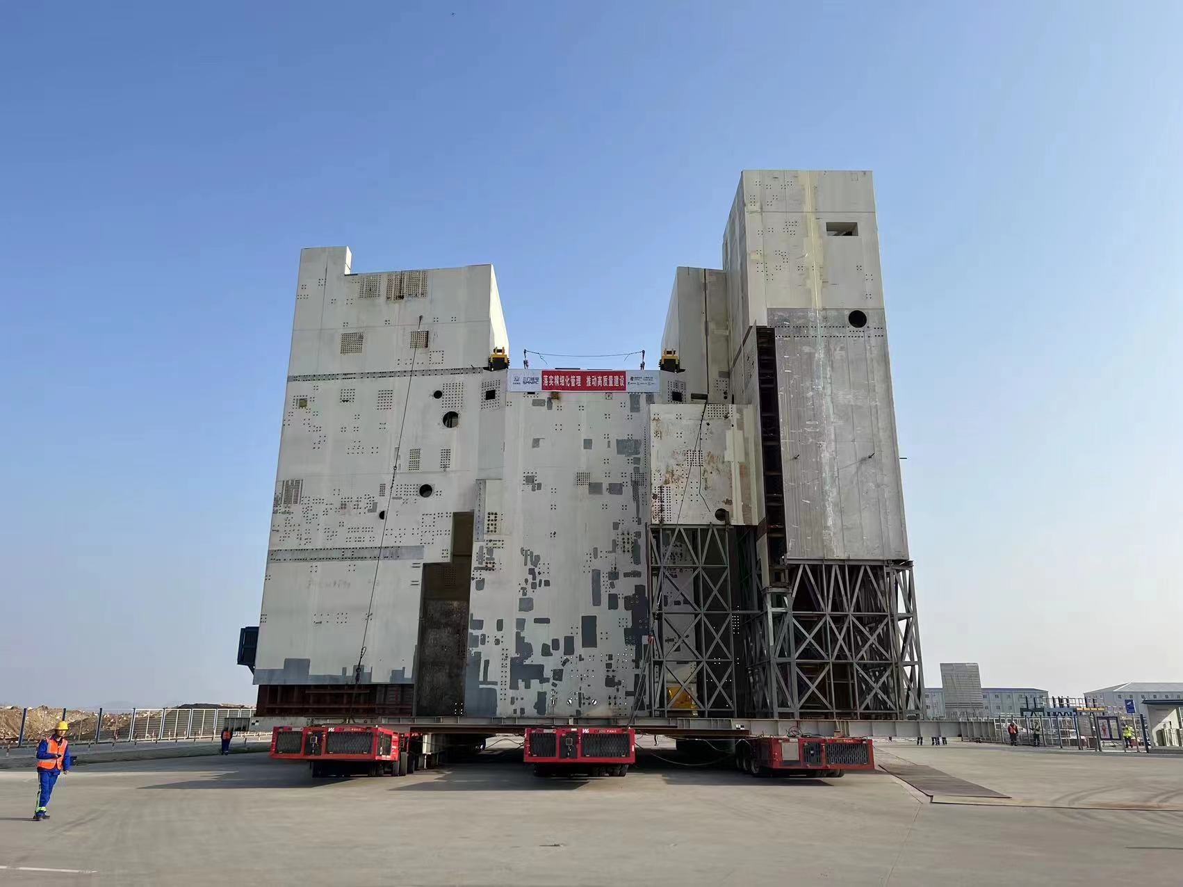 SPMT自行式模塊運輸車,又名自行式液壓平板車,此車輛是萬山公司生產(chǎn),為江蘇鹽城港控股集團有限公司所有。