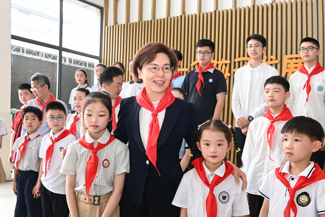 串場河小學(xué)傳承百年一小文化,集國家級等20多項榮譽(yù)一體。在“紅領(lǐng)巾向未來”主題活動墻前,徐纓仔細(xì)觀看孩子們提出的“金點子”“好提案”,給同學(xué)們關(guān)心家鄉(xiāng)發(fā)展的行為點贊,要求相關(guān)部門高度重視孩子們的意見建議,暢通溝通渠道、高效推進(jìn)落實,讓美好愿望變成現(xiàn)實圖景。