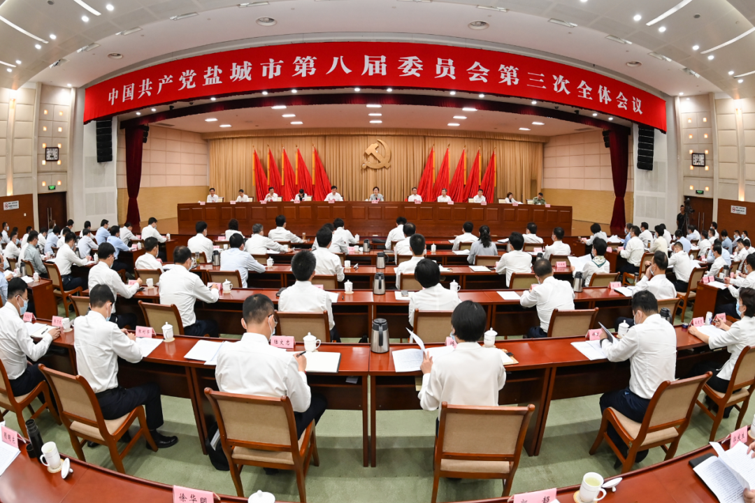 8月9日,中國共產(chǎn)黨鹽城市第八屆委員會第三次全體會議舉行。全會堅持以習(xí)近平新時代中國特色社會主義思想為指導(dǎo),深入學(xué)習(xí)貫徹習(xí)近平總書記在省部級主要領(lǐng)導(dǎo)干部“學(xué)習(xí)習(xí)近平總書記重要講話精神,迎接黨的二十大”專題研討班上的重要講話精神,全面落實“疫情要防住、經(jīng)濟要穩(wěn)住、發(fā)展要安全”重大要求,認真落實省委工作會議精神,總結(jié)上半年工作,部署當前和今后一段時期重點任務(wù),競逐綠色低碳發(fā)展新賽道,勇當沿海地區(qū)高質(zhì)量發(fā)展排頭兵,為全省“勇挑大梁”多作貢獻,以實際行動迎接黨的二十大勝利召開。