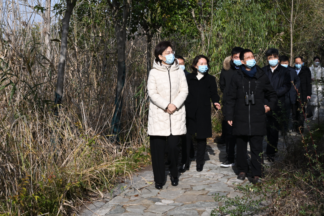 在冬日暖陽的照耀下,大縱湖湖面波光粼粼,成群結隊的水鳥或靜臥水面、或盤旋飛翔,與開闊的水面構成一幅生機勃勃、旖旎靈動的濕地畫卷。徐纓來到大縱湖國家濕地公園,實地調研濕地保護、生態修復、設施建設等情況,聽取大縱湖生態島試驗區規劃布局、建設進展等情況匯報,并與有關方面深入交流,探討建設生態島試驗區的有效路徑。徐纓說,習近平總書記在黨的二十大報告中強調,中國式現代化是人與自然和諧共生的現代化。鹽城濕地、森林、海洋三大生態系統交融,保護傳承好寶貴的生態家底,樹立綠色低碳發展典范是我們應有責任。我們要認真踐行習近平生態文明思想,以生態島試驗區建設為重要契機,大力實施生物多樣性保護,切實改善生態環境質量,高標準創造優質生態產品,充分展示試點建設成效,放大黃海濕地世遺品牌效應,全面建設人與自然和諧共生的現代化。