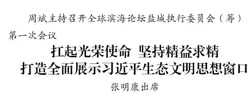 5月13日,市委書記周斌主持召開全球濱海論壇鹽城執行委員會(籌)第一次會議。他強調,要深入學習貫徹習近平生態文明思想,深刻認識辦好全球濱海論壇會議的重要意義,以高度的責任感和使命感,高標準謀劃、高水平籌備、高規格推進,更好展示發展成果、促進開放合作,為鹽城高質量發展集聚更多資源、注入更強動力。市委副書記、市政府黨組書記張明康出席。