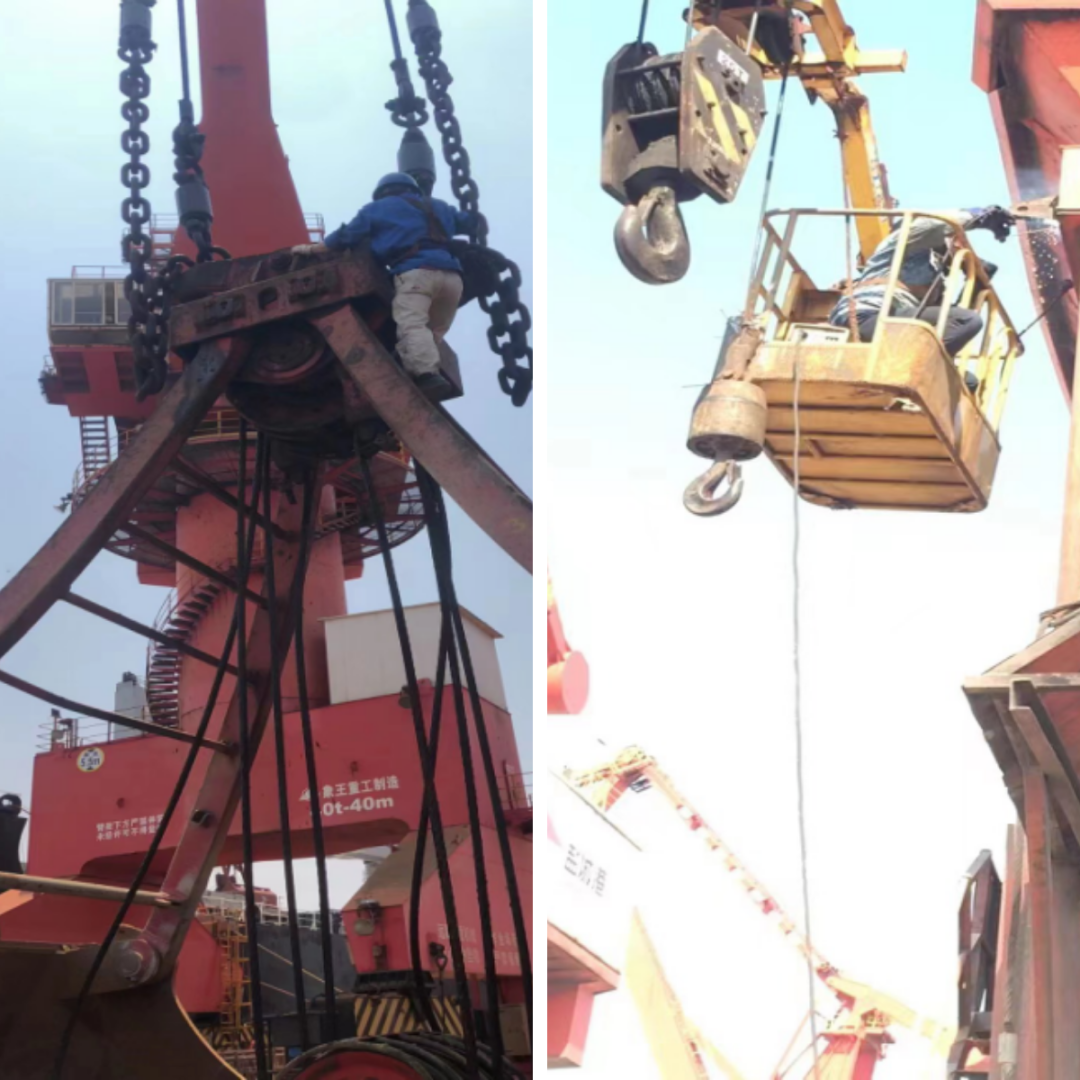 幾個藍色的身影穿梭在現(xiàn)場,平日里他們始終堅持在一線,同心協(xié)力,共同戰(zhàn)勝每一場“設(shè)備故障搶修戰(zhàn)”,這是通用碼頭維修班組的技術(shù)工人,他們負責(zé)碼頭設(shè)備的日常維護管理。不論寒冬酷暑,只要一個指令,維修班就會在碼頭與庫區(qū)之間奔波忙碌,哪里有故障,他們就到哪里,因此,他們也被譽為碼頭機械的“守護神”。