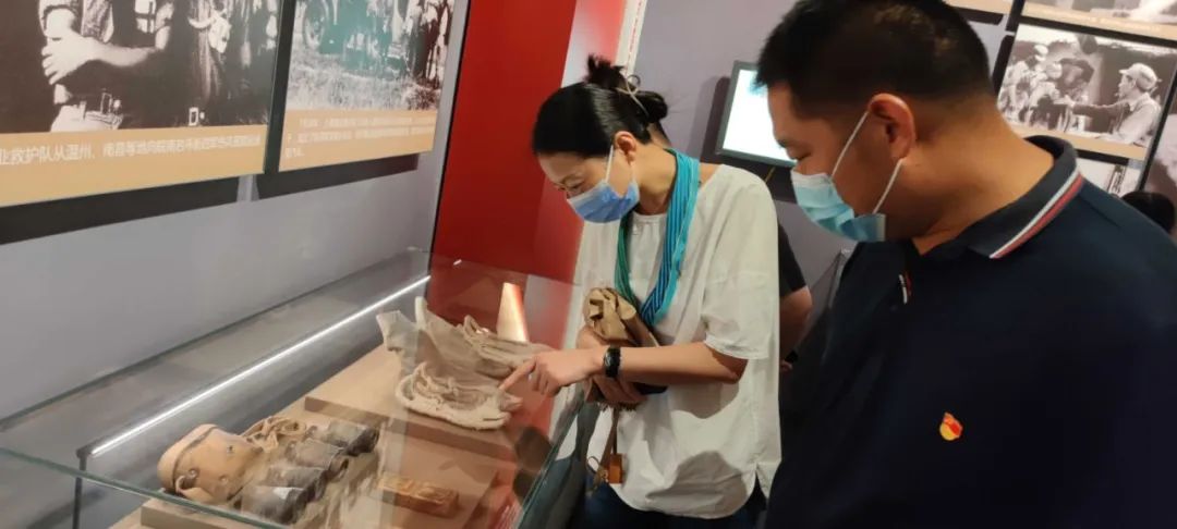 活動中,大家沿著引導標語,逐一走訪各個館區,重溫新四軍一路走來的崢嶸歲月。館內一件件歷史文物,一幅幅寶貴圖片,展現了中國共產黨創業之坎坷,奮斗之艱辛,重現了先烈用生命書寫的光輝歷程,革命之歌仿佛在耳邊緩緩奏響。在鮮紅的黨旗下,同志們舉起右拳鄭重宣誓,鏗鏘的誓言響徹大廳。