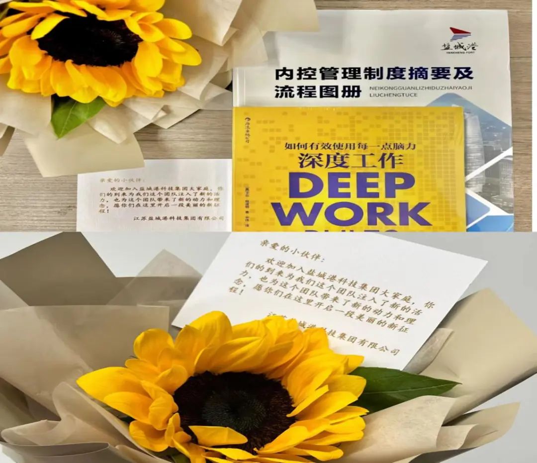 活動中,科技集團還為新員工準備了集團制度匯編、管理類書籍及歡迎賀卡。