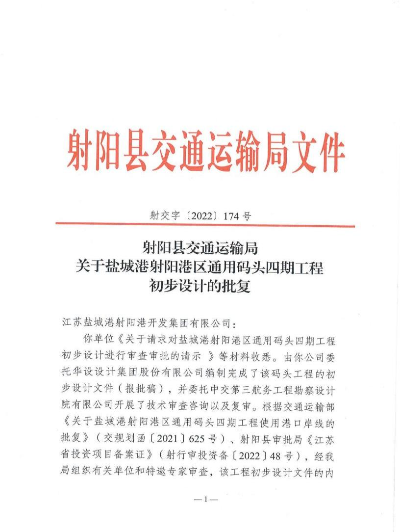 【項目大推進】鹽城港射陽港區通用碼頭四期工程初步設計和施工圖設計正式獲批