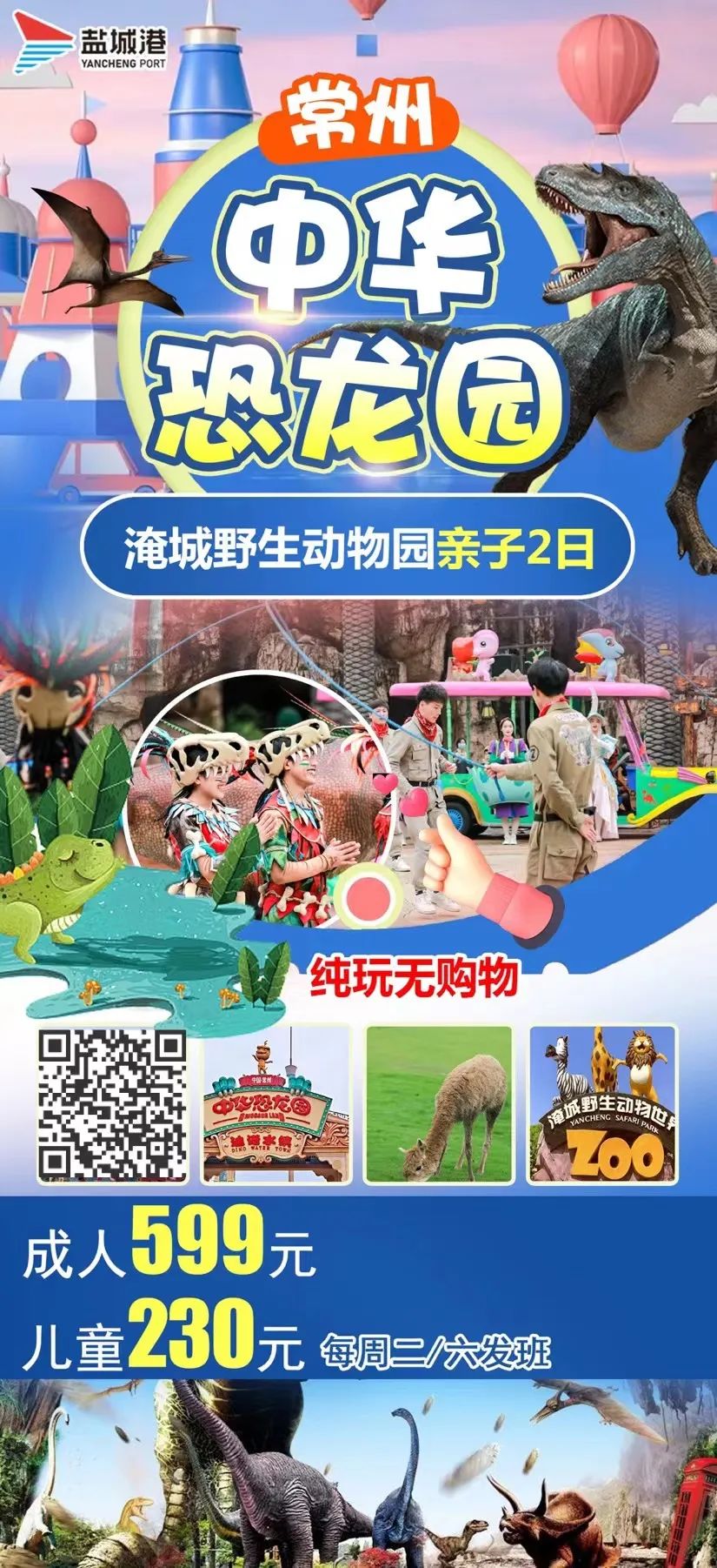 為充分發(fā)揮常州、鹽城兩地的旅游優(yōu)勢(shì),拓展常鹽合作空間和領(lǐng)域,港泊旅行社分公司本周首推常州恐龍園純玩一日游、常州恐龍園淹城動(dòng)物園親子2日游,超刺激的4D過(guò)山車,大海嘯,帶你探索恐龍的神秘家園;還可以近距離接觸200多種10000多頭動(dòng)物,森林大馬戲等表演,領(lǐng)略一場(chǎng)視覺和聽覺的盛宴。