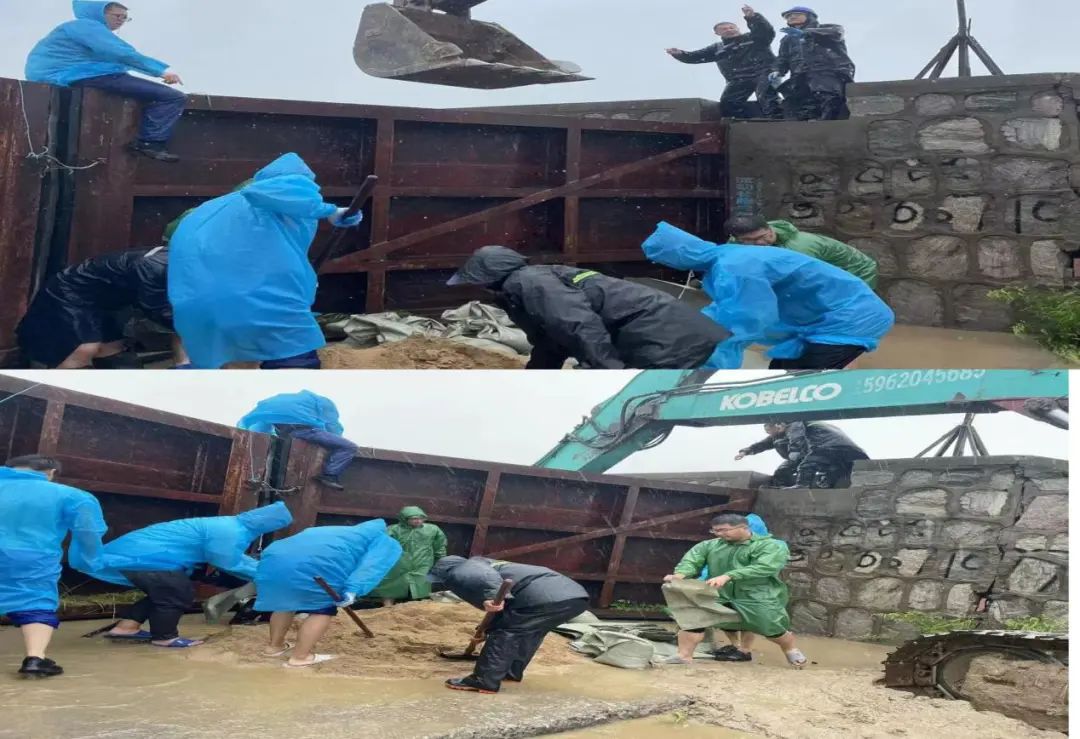 射陽港區相關負責同志帶頭巡查港區項目施工現場、海堤堆防汛閘門,同時組建一支15人搶險隊伍,備足防汛沙袋,嚴格按預案要求落實執行到位。