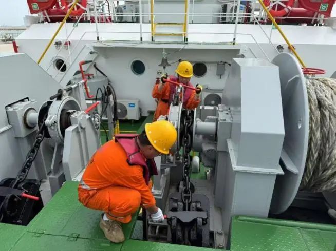 拖輪作業(yè)的成敗始于精細(xì)準(zhǔn)備。作業(yè)開始前,鹽城港拖輪服務(wù)公司全面結(jié)合船舶噸位、潮汐數(shù)據(jù)及碼頭環(huán)境,聯(lián)動(dòng)引航站,依托智能化系統(tǒng)制定最優(yōu)作業(yè)方案;嚴(yán)格全面排查主機(jī)、舵系、纜繩等關(guān)鍵設(shè)備,確保“零隱患”運(yùn)行;實(shí)時(shí)追蹤風(fēng)浪、能見度及洋流變化,動(dòng)態(tài)調(diào)整作業(yè)窗口期,在極端天氣下堅(jiān)決堅(jiān)持“寧停三分,不搶一秒”原則。此外,組織全員進(jìn)行方案推演,明確拖帶點(diǎn)位、通訊指令及應(yīng)急預(yù)案,將安全標(biāo)準(zhǔn)滲透至每個(gè)環(huán)節(jié),為高效協(xié)同奠定基礎(chǔ)。