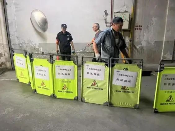 隨著防汛警報(bào)響起,物業(yè)應(yīng)急小組迅速集結(jié),攜帶防汛沙袋、防洪插板、抽水泵等物資設(shè)備趕赴西大門。各小組按照預(yù)案分工展開作業(yè):搶險(xiǎn)救援組兵分兩路,第一分隊(duì)使用專業(yè)工具快速搬運(yùn)并組裝鋁合金防洪插板,在車庫入口處構(gòu)筑起臨時(shí)擋水墻;第二分隊(duì)緊隨其后,用沙袋在插板后方疊筑“品”字形防洪墻,每層沙袋間用防水布加固,確保無滲漏縫隙。設(shè)備保障組同步啟動移動式抽水泵,對積水區(qū)域?qū)嵤?qiáng)排作業(yè),同時(shí)安排技術(shù)人員對故障排水系統(tǒng)進(jìn)行緊急搶修。全程通過智能廣播系統(tǒng)循環(huán)播放疏散提示,引導(dǎo)周邊居民有序撤離至臨時(shí)安置點(diǎn)。