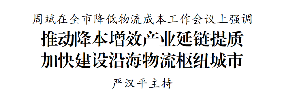 8月15日,全市降低物流成本工作會議召開。市委書記周斌出席會議并講話。他強調,要深入學習貫徹習近平總書記關于現代物流的重要論述和對江蘇工作重要講話精神,認真落實中央決策部署和省委省政府工作要求,全面推動物流降本增效、產業延鏈提質,加快建設具有全國影響力的沿海物流樞紐城市。市委副書記、代市長嚴漢平主持會議。