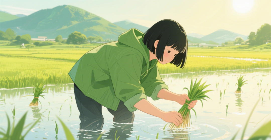 農民伯伯會用竹竿或繩子輕輕搖晃“父本”水稻,就像搖一棵掛滿“花粉粉末”的樹!花粉就會像小傘兵一樣飄到“母本”水稻身上,完成授粉!
