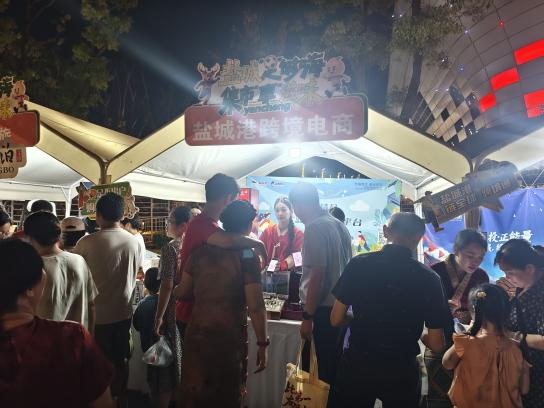 比賽中,市集區域熱度與賽場精彩同步飆升!莎士比亞電子商務公司設置的跨境好物市集穩居人氣中心——中場休息時段,市集區域迎來客流高峰,眾多球迷前來選購商品。球迷們結伴選購進口零食與網紅飲品,挑選之際熱議賽事精彩瞬間;攤主與顧客熱情互動,“保真劃算的跨境商品”“觀賽購物兩不誤太贊了”等好評此起彼伏。賽事間歇人氣依舊沸騰,鹽城隊主題商品前孩子們興奮穿梭選購,因足球結緣的球迷們通過同款商品開啟交流、自然破冰。