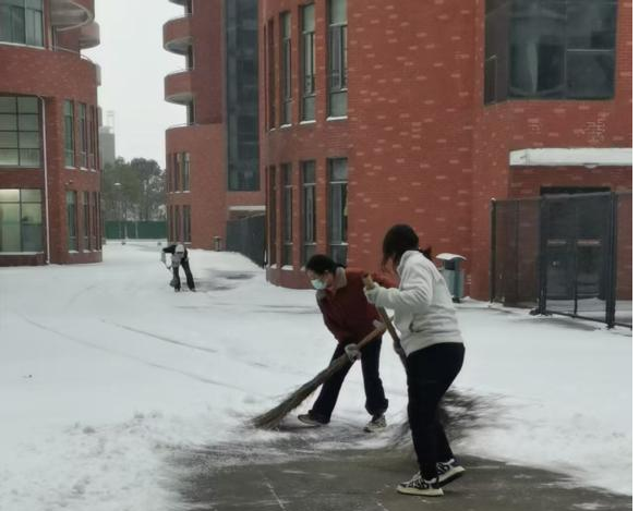 在鹽城幼兒高等師范學(xué)校南校區(qū),鹽城港物業(yè)團(tuán)隊(duì)連夜啟動(dòng)應(yīng)急預(yù)案,天亮前便投入掃雪除冰戰(zhàn)斗。大家分組協(xié)作揮鍬破冰、清掃積雪,在教學(xué)樓、宿舍樓出入口細(xì)心鋪設(shè)防滑草墊,經(jīng)過(guò)兩小時(shí)持續(xù)作業(yè),為師生開(kāi)辟出條條暢通無(wú)阻的“平安路”“暖心道”。風(fēng)雪中,物業(yè)人員俯身清掃的身影,成為校園里最安穩(wěn)的風(fēng)景。