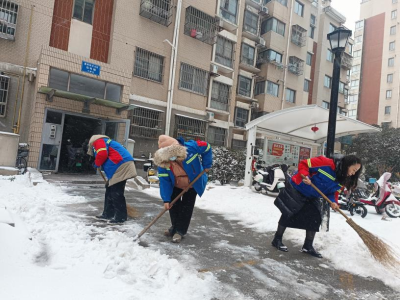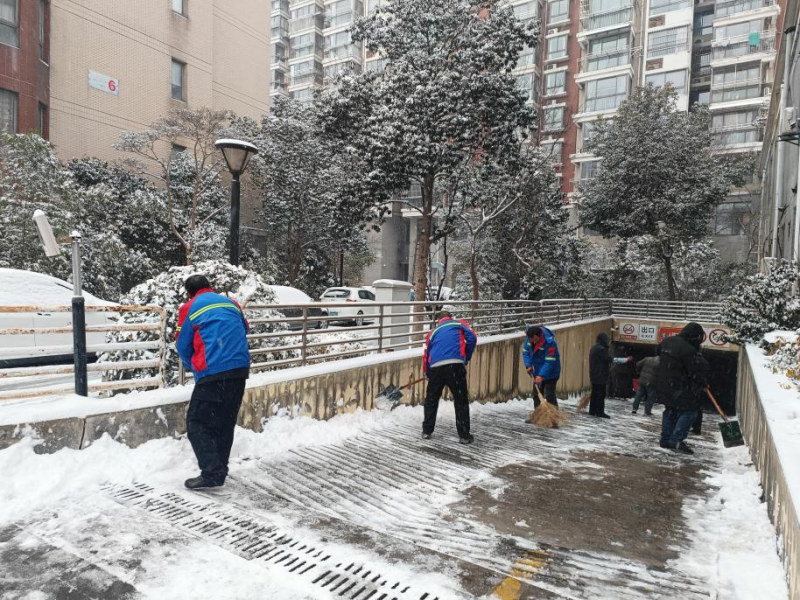 持續(xù)雨雪冰凍天氣,氣溫驟降至零下,道路積雪結(jié)冰給群眾出行和校園安全帶來(lái)嚴(yán)峻考驗(yàn)。鹽港物業(yè)第一時(shí)間響應(yīng),在居民小區(qū),工作人員頂風(fēng)冒寒,手持鐵鍬、掃帚在晨光熹微中集結(jié),分工協(xié)作清掃樓門通道、地下車庫(kù)坡道等關(guān)鍵區(qū)域。物業(yè)客服、保潔部門的女員工組成“巾幗除雪隊(duì)”,清掃積雪后及時(shí)撒布融雪鹽,用“巾幗不讓須眉”的擔(dān)當(dāng)守護(hù)每一位業(yè)主的出行安全。面對(duì)業(yè)主車輛打滑被困的突發(fā)狀況,工作人員火速上前,清掃冰雪、指揮調(diào)度,默契配合幫助車輛成功脫困,用及時(shí)援手傳遞服務(wù)溫度。